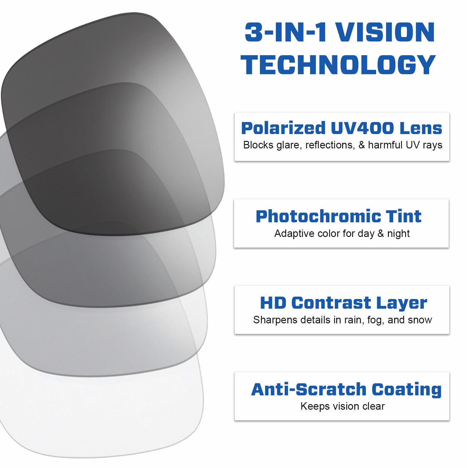 - 3-in-1 Vision Technology for clear, glare-free driving day and night