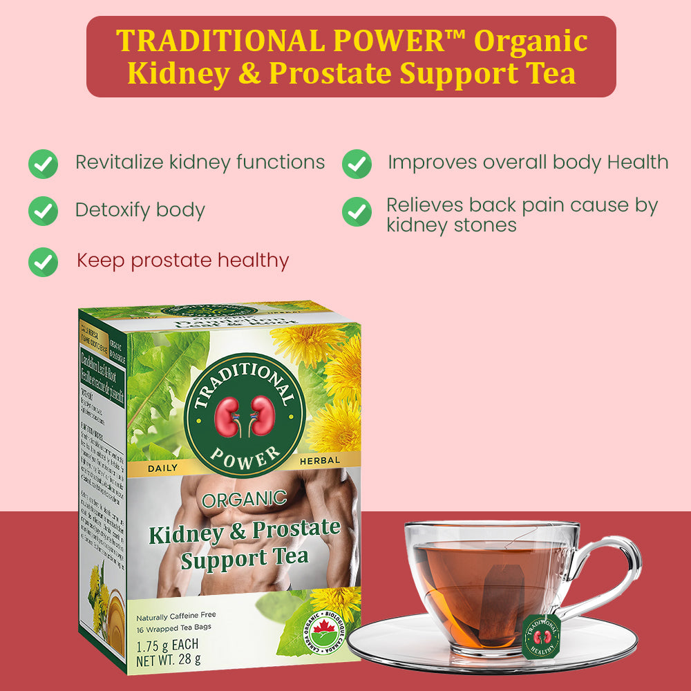 TRADITIONAL POWER⢠Organic Kidney & Prostate Support Tea is a natural homeopathic, non-drug approach to treating prostate problems and effectively preventing future attacks!