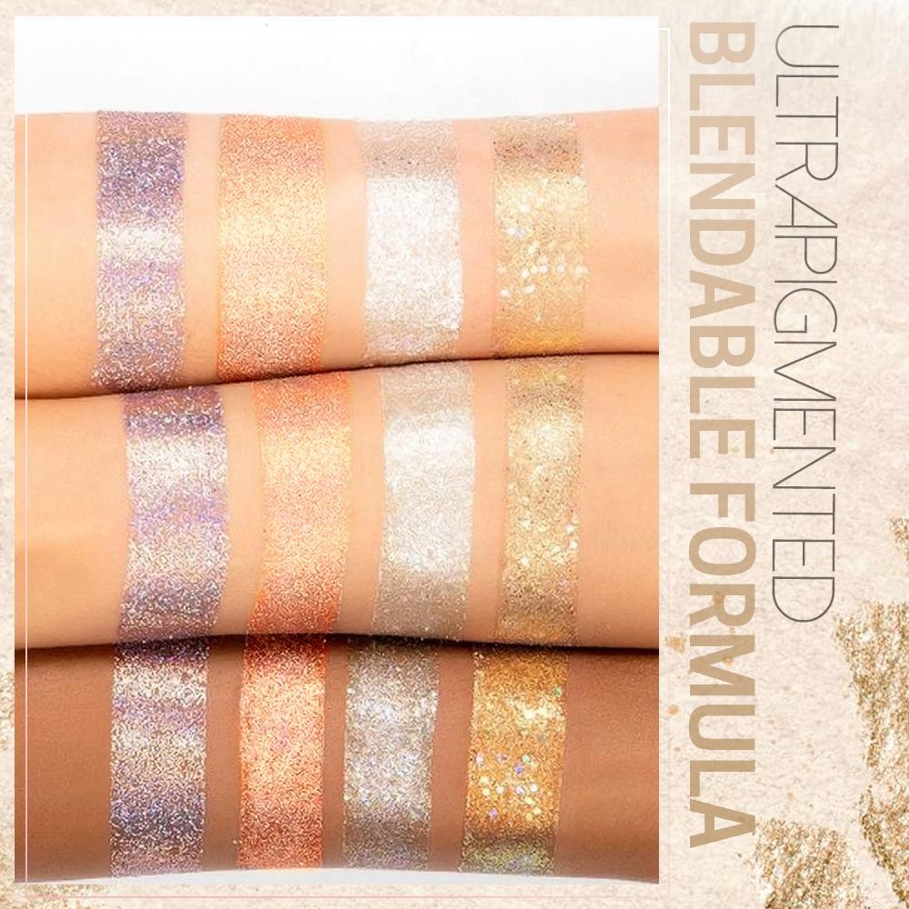 Highly pigmented, Blendable formula let it glides on smoothly to create stunning eyeshadow look in seconds! Available in 15 sparkling hues, every shade is loaded with high-impact sparkle that stay put with no flakes and fallouts!