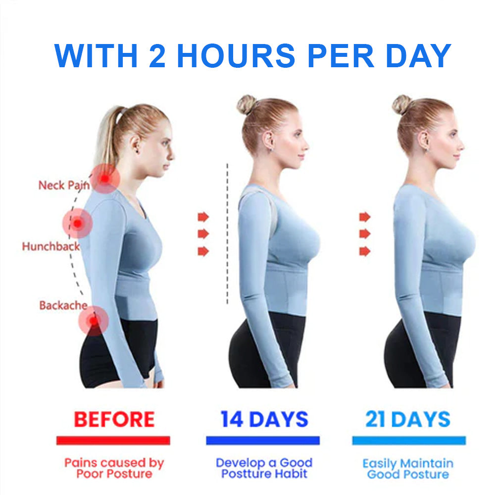 NOTE: For best results, we recommend wearing the posture corrector for 1-2 hours daily over 21 days to develop long-term habits for improved sitting, standing, and walking posture.
